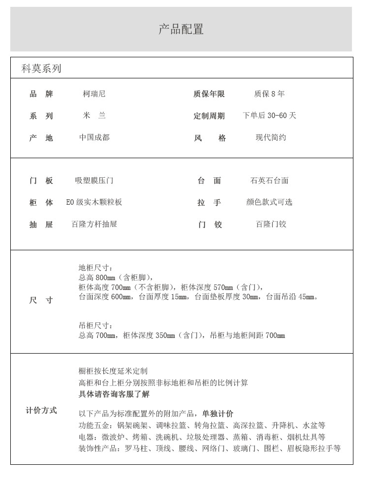 材质:意大利可丽芙进口颗粒板(欧标E1)/奥地利百隆五金